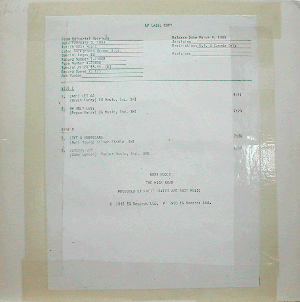 |  | Blank white cover. "LP label copy" sheet taped on front. |