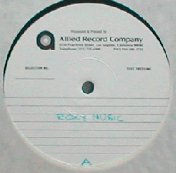 | White Allied Record Company test pressing labels. Handwritten info on each side.