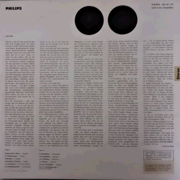 | Dark blue labels with silver print. Silver Philips logo at the top. Silver 'URHEBER UND...' rimprint, rights society GEMA. |  | Laminated (> front only) single cover. A few lamination creases on front. Light surface wear (> top) and dirt marks on back. Light creases along the edges. Some corner wear, one of the corners (> top > right) being also slightly bent.