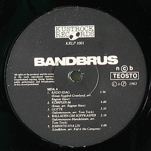 | Musta etiketti valkoisilla teksteillä. Ylhäällä mustavalkoinen Kustrock Recordsin logo. |  | Puolikiiltävät kannet. Etupuolella yksi pieni likajälki (> oikealla > keskellä). Takana hieman kirjoitusta (> biisilista). Kevyehköä kulumaa kummallakin puolella. Reunoissa kulumaa ja pikkuryppyjä. Hieman kuluneet kulmat. |