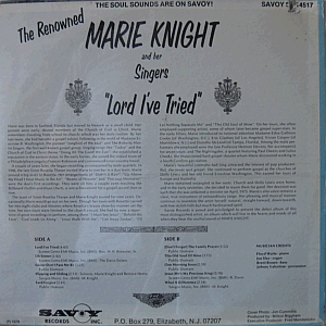 A renowned American rhythm & blues and gospel singer, born Marie Roach in 1925 in Sanford, Florida. Credited to Marie Knight and Her Singers.