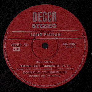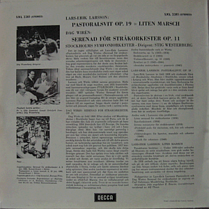 Orchestral works by two renowned Swedish composers, performed by Stockholm Symphony Orchestra conducted by Stig Westerberg. Swedish only Decca SXL Series (stereo) issue. The record may have been manufactured in England.