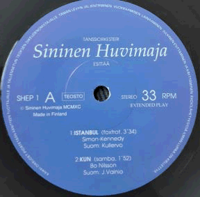 | Tästä 9-henkisestä ryhmästä en tiedä juuri mitään. Netistä kuitenkin selvisi, että entinen tanssiorkesteri Sininen Huvimaja operoi nykyisin bilebändi Sininen Huvimajana. Ainoana yhteisenä tekijänä taitaa olla pianisti Heikki Prokkola. Anyway, 1990-luvun alussa yhtye julkaisi omakustanteena LP-levyn nopeudella soivan EP:n, jonka neljä cover-biisiä ovat: "Istanbul" / "Kun" // "Kuningaskobra" / "Venus". Ihan on pätevää meininkiä, levynäkin vallan harvinainen.