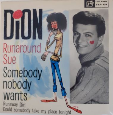 | A highly succesful American pop, rock, doo-wop, blues, r&b and folk singer, songwriter and guitarist, born Dion Francis DiMucci in 1938 in The Bronx, New York. Swedish only 4-track ("Runaround Sue" / " Somebody Nobody Wants" // "Runaway Girl" / "Could Somebody Take My Place Tonight") EP from 1961.