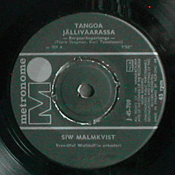 Ruotsalainen, Skånen Landskornassa vuonna 1936 syntynyt iskelmätähti, jonka suosio on ollut suurta myös mm. Saksassa. Artistin ainoa suomenkielinen sinkku, jonka A-puoli on Thore Skogmanin sävellys Kari Tuomisaaren suomennoksena. Takasivulta löytyy Petula Clarkin hitti "I Couldn't Live without Your Love" Lasse Mårtensonin (> salanimellä L. Vaajakorpi) käännöksenä - taisivat muuten Siw ja Lasse olla jossakin vaiheessa ihan aviopari. Sven-Olof Walldoffin orkesteri vastaa taustoista. Tosi hyvin tuo Siw laulaa suomeksikin!