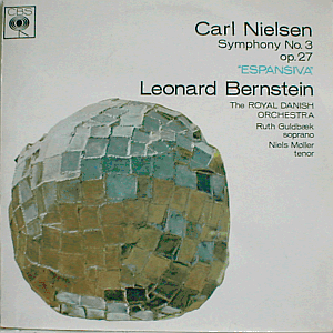 Carl Nielsen's "Symphony No. 3 Op. 27 (Espansiva)", performed by The Royal Danish Orchestra with Ruth Guldbaek (soprano) and Niels Møller (baritone) on vocals, conducted by Leonard Bernstein. Recorded on May 16th 1965 in Copenhagen, Denmark. Late 1960s stereo issue, I should think.