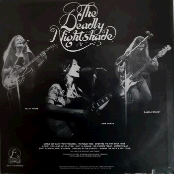 | An American all-female rock / country trio, formed in the mid 1960's at Mount Holyoke Coolege in western Massachusetts as The Moppets, reunited in 1972 as The Deadly Nightshade. With e.g. Allan Schwartzberg, Lance Quinn, Rick Marotta, David Spinozza, Steve Kahn, Michael Manieri, David Sanborn, Lou Marini Jr. and Michael & Randy Brecker. Their 2nd and final album.