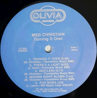 | Blue labels with silver print, silver Olivia picture logo at the top. |  | Glossy single cover. Very light surface wear on each side (> top > middle). Some wear and light creases along the edges. A bit worn / creased corners. |