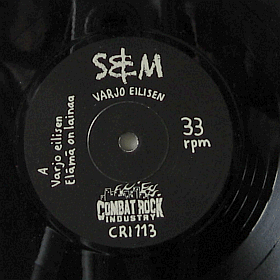 Musta etiketti valkoisilla teksteillä. Mustavalkoinen Combat Rock Industry -kuvalogo alhaalla.Puolimatat kuvakannet.