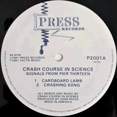 An American electronic / industrial new wave trio, formed in 1979 in Philadelphia, Pennsylvania. US issue of their very rare 12" 45 rpm EP. Four tracks: "Cardboard Lamb" / "Crashing Song" // "Flying Turns" / "Factory Forehead".