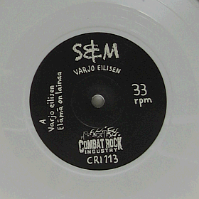 Musta etiketti valkoisilla teksteillä. Mustavalkoinen Combat Rock Industry -kuvalogo alhaalla.Puolimatat kuvakannet.