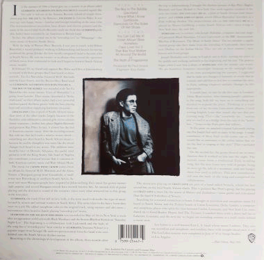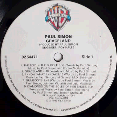 | A highly popular American singer-songwriter, born in 1941 in Newark, New Jersey, best remembered from Simon & Garfunkel. An eclectic mixture of genres inspired by the music of South Africa. Canadian issue of his 7th studio album, released in August 1986.