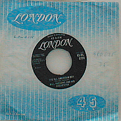 An American rock 'n' roll singer, born in 1934 in Crossville, Tennessee. Side A (possibly also side B) is actually performed by Bobby Bare, an old friend to Bill Parsons who felt that Bare could get the most out of his song. However, the single was credited to Bill Parsons and His Orchestra. UK issue of Fraternity 835 (USA 1959).